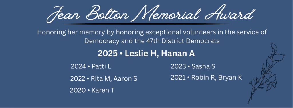 Your membership dues directly help to get Democrats elected for office across our district. The 47th District Democrats asks you to please pay your 2026 dues and we thank you for your support!